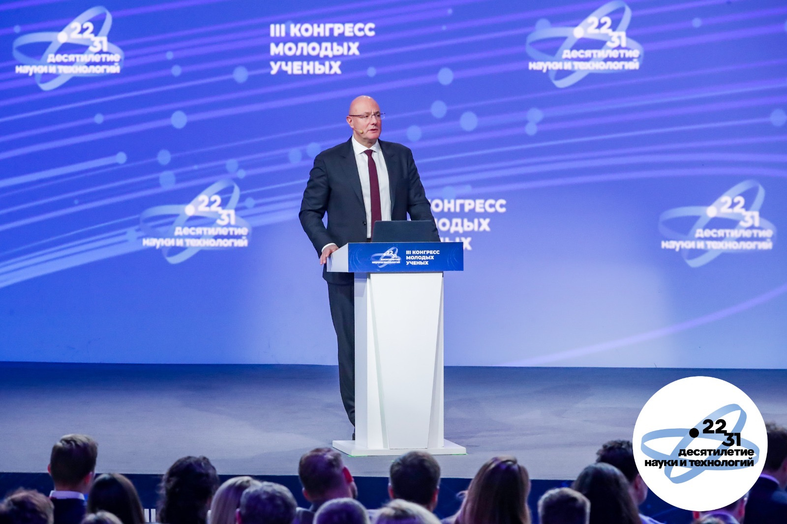 Заключительным мероприятием III Конгресса молодых ученых стало пленарное заседание на тему «Наука: пространство возможностей». Оно прошло под председательствомзаместителя Председателя Правительства Российской Федерации Дмитрия Чернышенко. Во вступительном слове онсказал: «Первоочередная задача, поставленная Владимиром Путиным – укрепление технологического суверенитета. Для этого страна должна сама себя обеспечивать всей критически значимой продукцией – микроэлектроникой, станками, транспортом, медикаментами, продуктами питания. Именно такие производственные цепочки лежат в основе «мегапроектов». При этом мы понимаем, что добиться успехов в экономике в целом и в промышленном производстве в частности невозможно без ученых и их прорывных идей. Это глобальная задача для науки. Поэтому Правительство продолжит создавать все условия для комфортной работы исследователей».